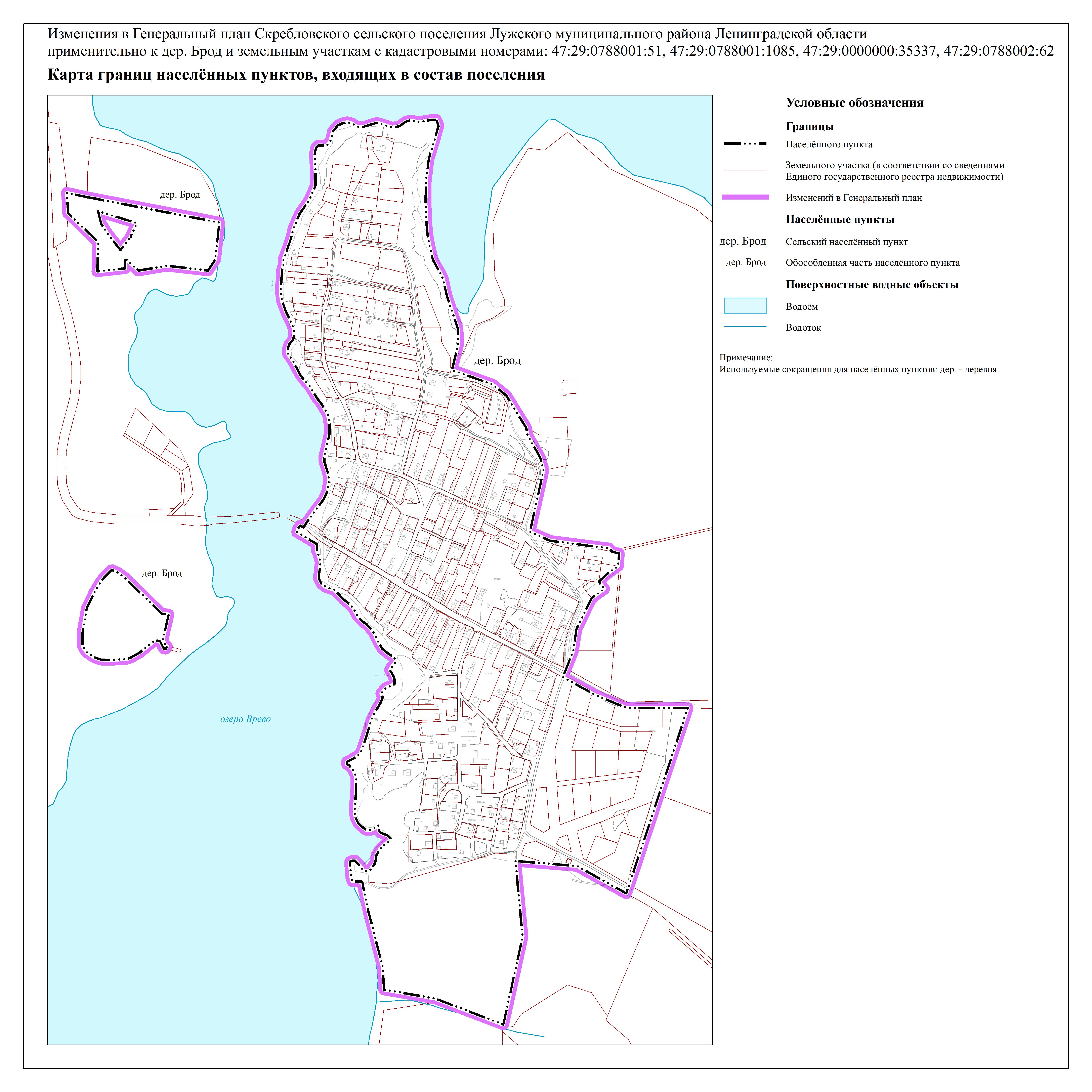 Постановление Правительства Ленинградской области от 15.04.2026 № 321 «О внесении изменений в Генеральный план Скребловского сельского поселения Лужского муниципального района Ленинградской области применительно к деревне Брод и земельным участкам с кадастровыми номерами: 47:29:0788001:51, 47:29:0788001:1085, 47:29:0000000:35337, 47:29:0788002:62»